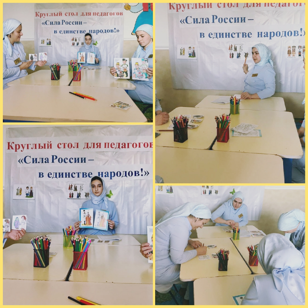 Согласно календарному плану воспитательной работы средней группы «Ангелочки» и план-графику работы на 4 квартал 2021 года по реализации Единой Концепции духовно-нравственного воспитания и развития подрастающего поколения Грозненского муниципального района с педагогами ДОУ был проведен Круглый стол с педагогами на тему: «Сила России – в единстве народов!»